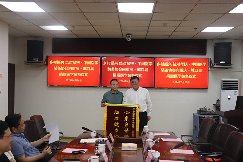 6月29日,,,,,,“鄉村振興,,,,,,結對幫扶”中國醫學裝備協會向重慶市城口縣捐贈醫學裝備儀式在城口縣人民醫院舉行。。。。。。中國醫學裝備協會、城口縣人民政府辦公室,,,,,,城口縣民政局、城口縣農業農村委員會、城口縣衛生康健委員會、城口縣人民醫院等相關單位領導,,,,,,以及歐譜曼迪等愛心醫療企業代表出席捐贈儀式。。。。。。